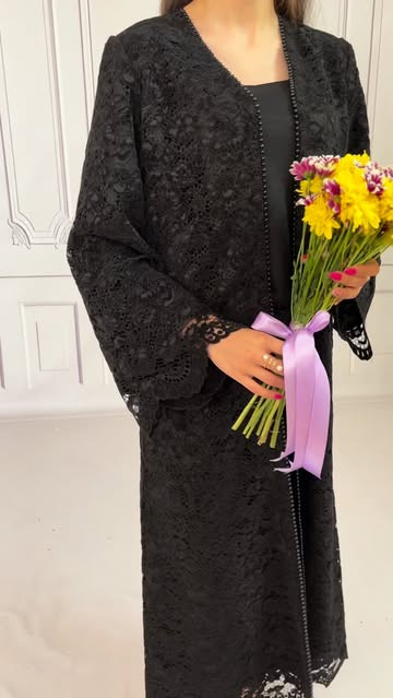 مانتوى گیپور مشكى با دوخت تميز وآستر ظريف ، انتخابى شيک براى مجالس ومهمانى ها. مدل آزاد با آستين هاى كارشده و لبه گیپوری، جلوه اى خاص به استايل شما مى بخشد. تزعيين منجوق دوزى به قسمت جلو، اين كار را به گزینهاى لوكس و متفاوت تبديل كرده است. درخشش آرام وزنانه براى خاص ترين لحظه هاى شما.