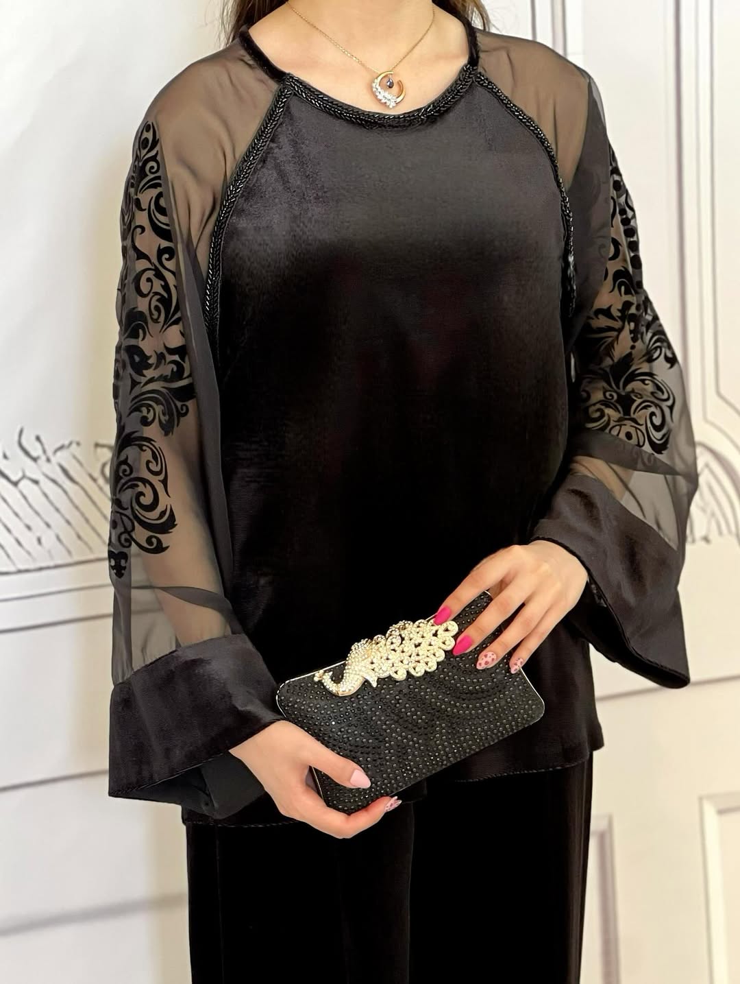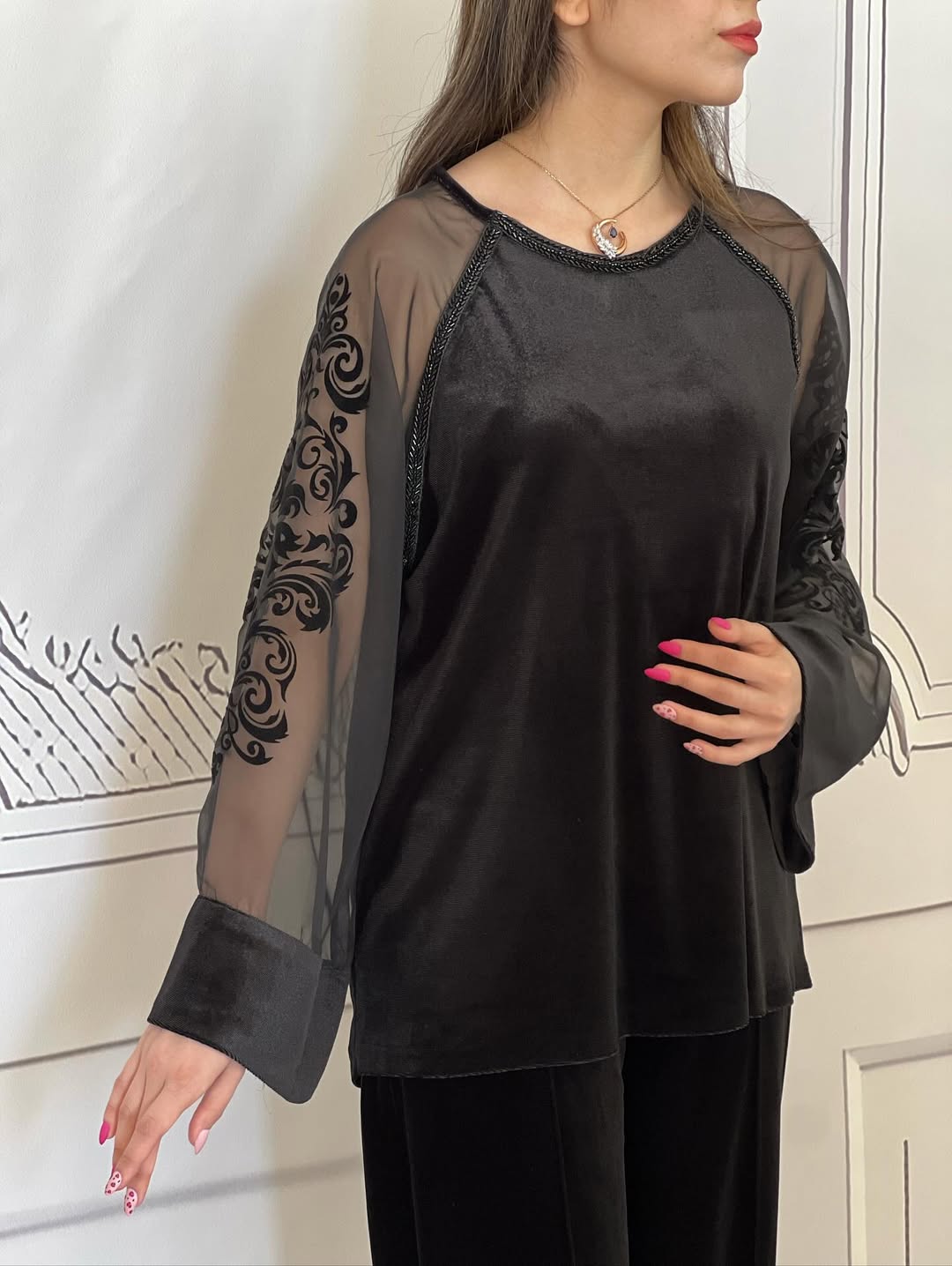 شومیز مشکی مخمل و حریر